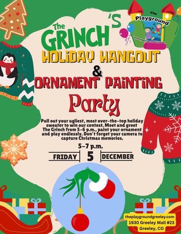Join us for a jolly good time as kids get to meet the Grinch and hand-paint their very own Grinch themed ornament to take home!